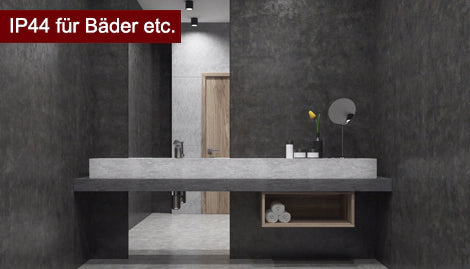 Für Feuchträume wie das Bad ist der IP-Schutz besonders zu beachten. Er enthält Informationen darüber, wie abgesichert Ihr Aufbaustrahler gegen das Eindringen von Staub und Feuchtigkeit ist. Für die Installation in der Nähe von Wasserhähnen ist ein Aufbaustrahler IP44 beispielsweise optimal, für Außenbereiche mit Regeneinfall empfiehlt sich ein IP65.